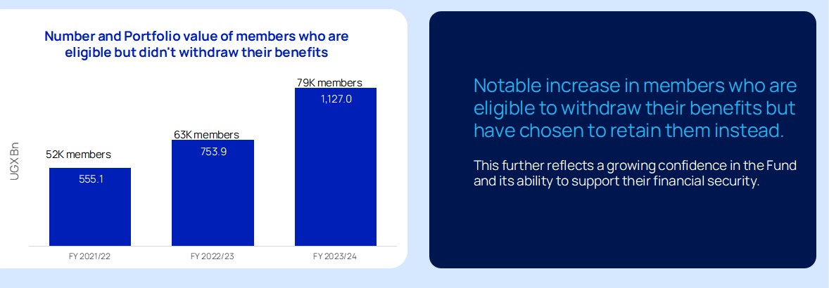 The number of NSSF members who are eligible to withdraw their benefits, but have instead chose to retain them in the Fund rose from 52000 in 2022 to 79000 in 2024.