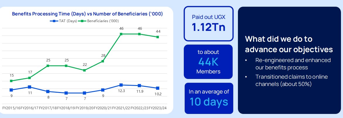 NSSF can now process funds for over 44,000 members in a record time of 10 days in 2024. When compared to 2015, only 15000 members would have their funds processed in 9 days.