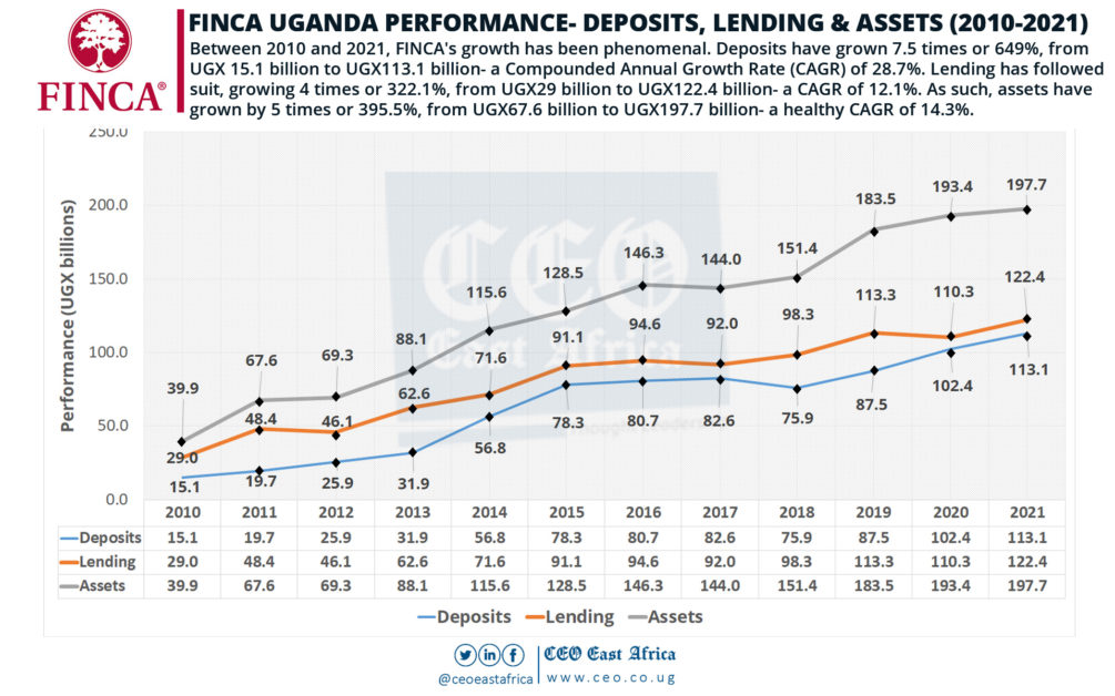 Thanks to this healthy growth, FINCA remains a strong MDI with all its key ratios well above the regulatory thresholds. For example, the core capital and total capital adequacy as of the end of 2021, stood at 23.60% and 26.44% respectively compared to the Bank of Uganda’s requirements of 15% and 20%.