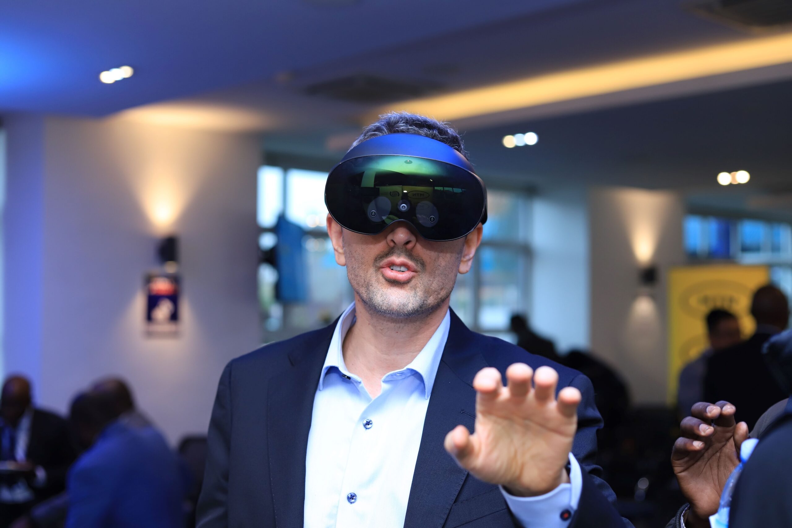Ali Monzer, MTN Uganda’s Chief Technology and Information Officer (CTIO) demonstrating the use of virtual reality headsets using MTN 5G internet during a 5G press conference at UCC Full size is 2560 × 1707 pixelsMarch 12, 2024 Image navigation IMG_6410 IMG_6534
