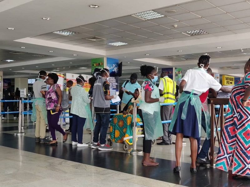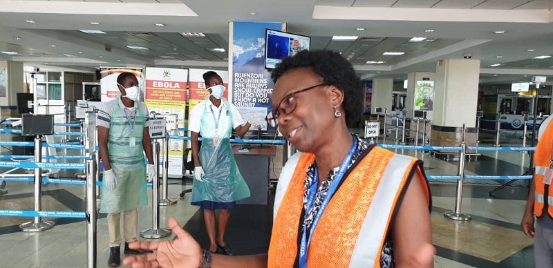 I visited Entebbe International Airport this evening to monitor the ongoing #COVID19 screening process of all travellers. I am impressed with the health workers undertaking screening & airport is moving smoothly.