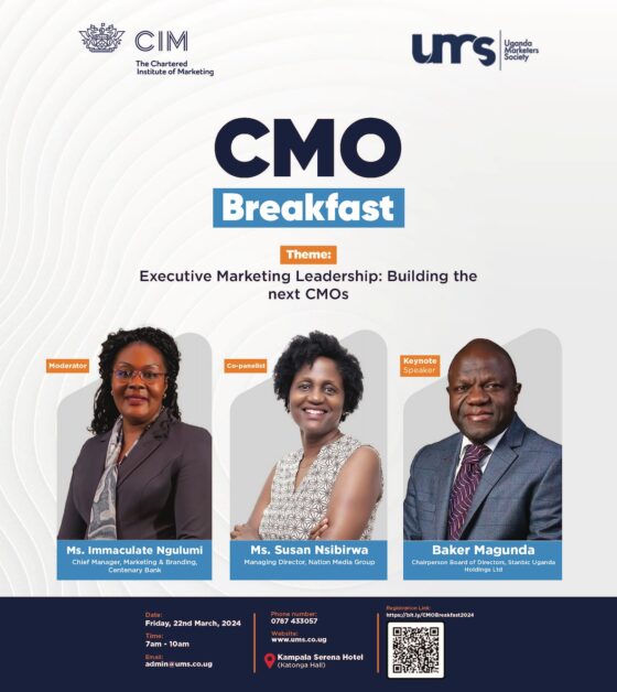 Seasoned marketers Baker Magunda, the Chairperson Board of Directors, Stanbic Uganda Holdings and Suzan Nsibirwa, the Managing Director, Nation Media Group Uganda are the keynote speakers. Immaculate Ngulumi, the Chief Manager, Marketing and Branding, at Centenary Bank will moderate the discussion.