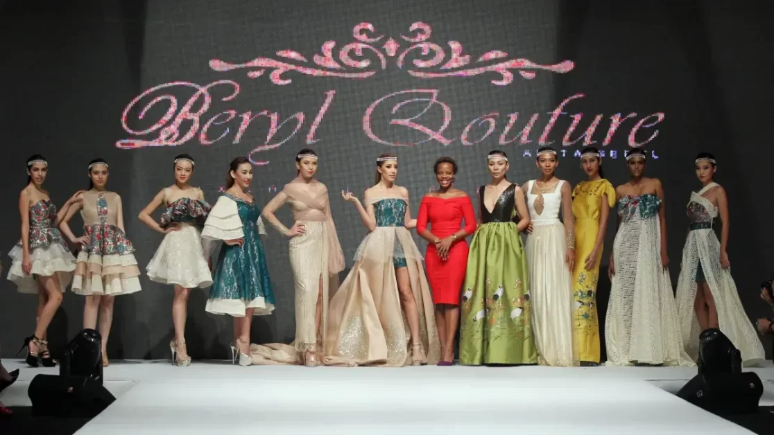 Beryl Couture models, Anita Beryl (in red). Anita Beryl is an award-winning and in-demand Ugandan couturier, popular for embracing femininity, romance and timeless elegance.
