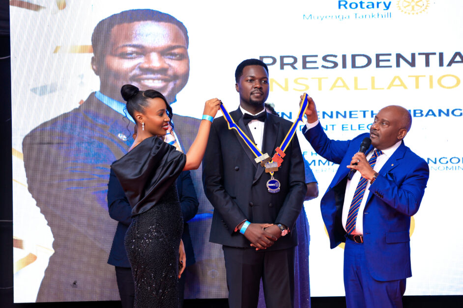 Rubango installed as Muyenga Tankhill Rotary Club president by his wife, Daphine and Rotary International Director for Africa, Emmanuel Katongole, last year.