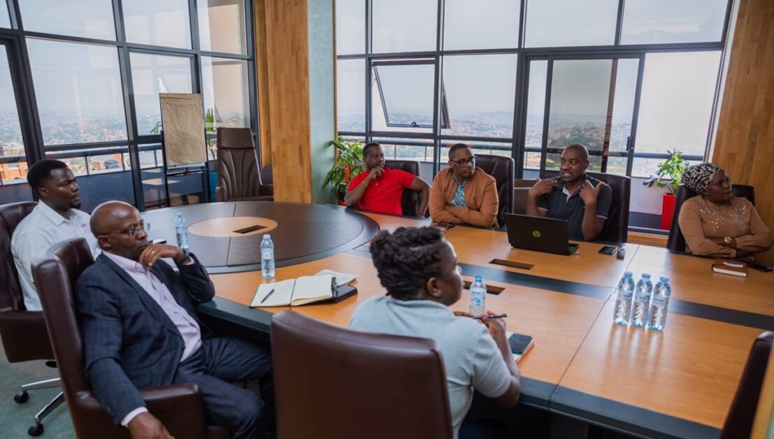 Mr Bildard Baguma, the Executive Director of JMS, accompanied by Mr Rubango have a conversation with officials from Next Media.