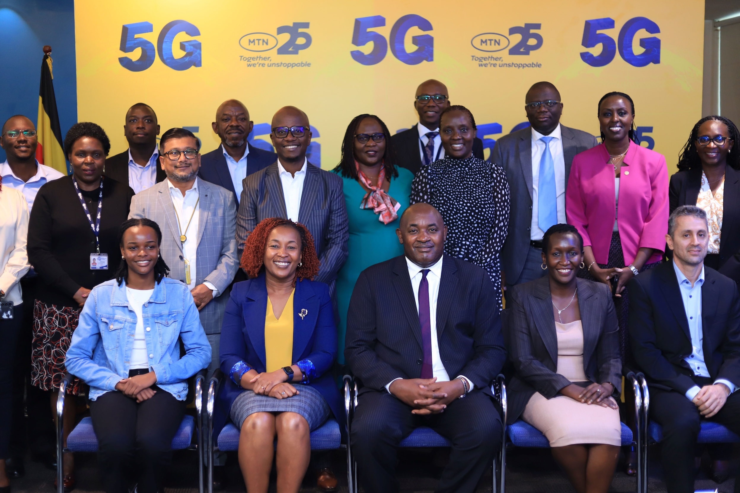 Picture Moment with the Minister of ICT and National Guidance, Members of MTN Uganda’s Executive Committee after the 5G demonstration at UCC