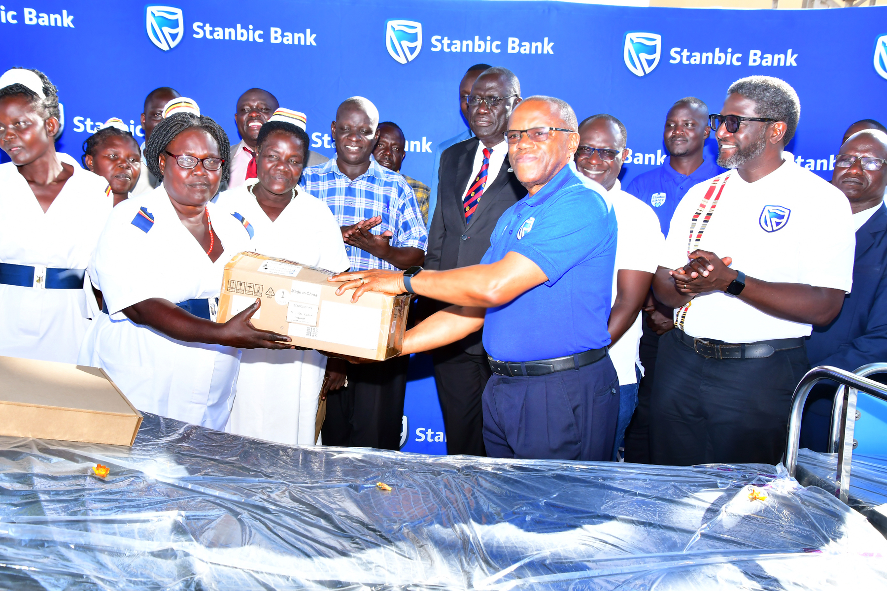At a donation ceremony at the hospital, Stanbic Bank provided essential maternal health equipment valued at UGX 18 million. The donation included a modern oxygen concentrator, patient transportation stretcher, pulse oximeter, laryngoscope set and advanced medical devices such as an ECG machine, digital BP monitors and four Patient beds.