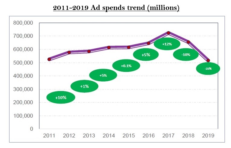 According to an 8-year trend analysis as captured in the Ipsos National Audience Measurement Survey (NAMS) 2019, the traditional radio/tv/Newspaper advertising model is being challenged by digital. Growth in traditional advertising spend peaked in 2017. Magona believes digital is responsible for the decline in traditional advertising. He says digital- is now the new way of doing things, but even then, quality content will be the ultimate separator of boys and men.